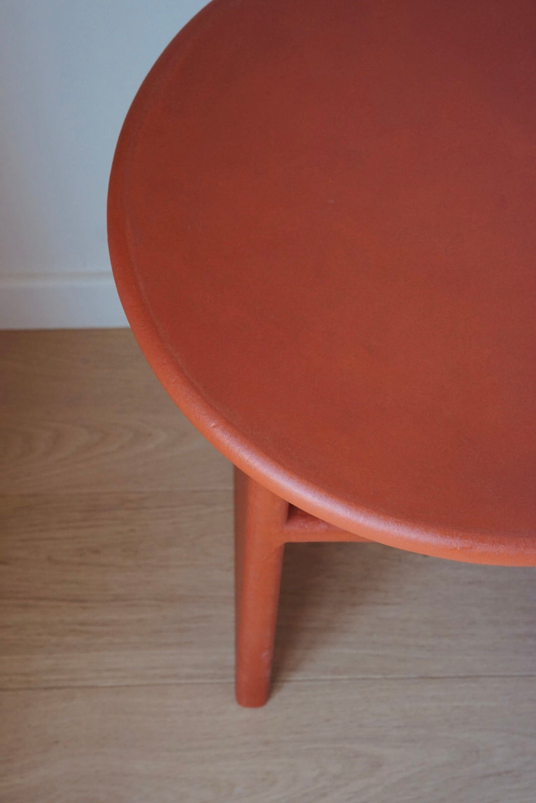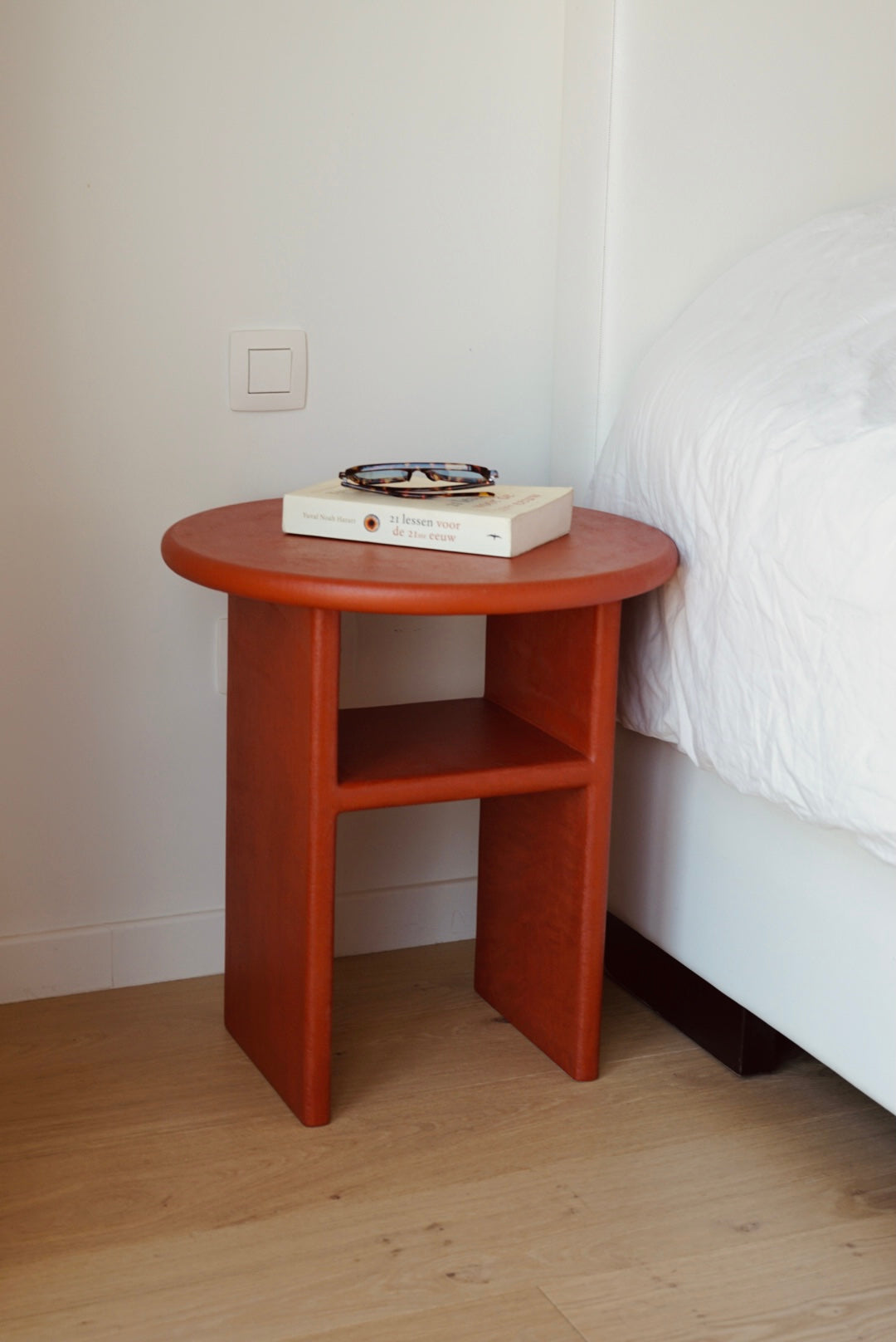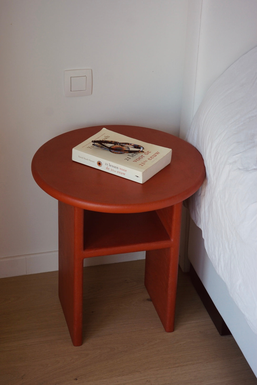 Stéphanie is a playful and vibrant nightstand in a bold terracotta colour that looks almost good enough to eat. Its compact form and smooth curves make it a joyful addition beside any bed or in a cosy corner.