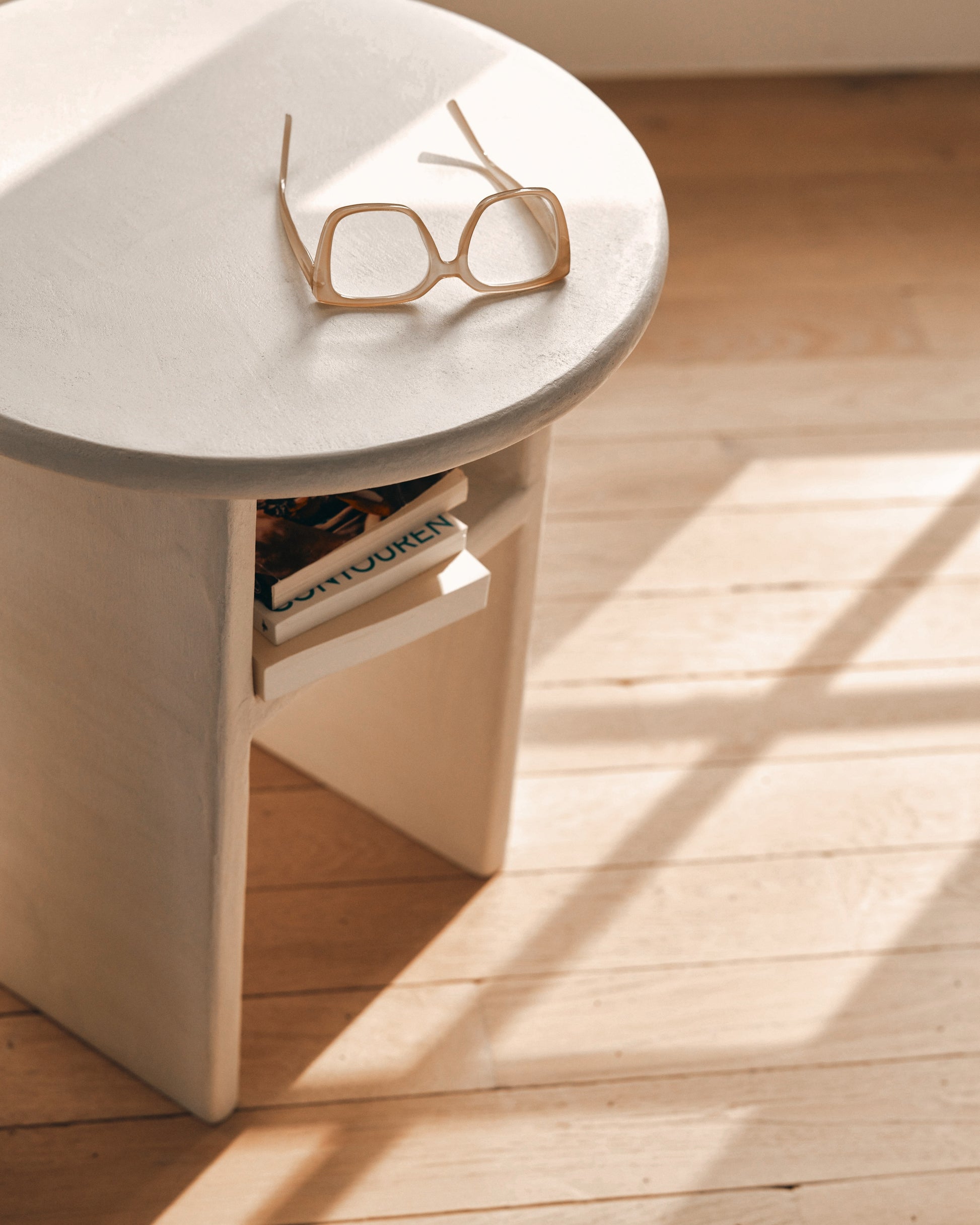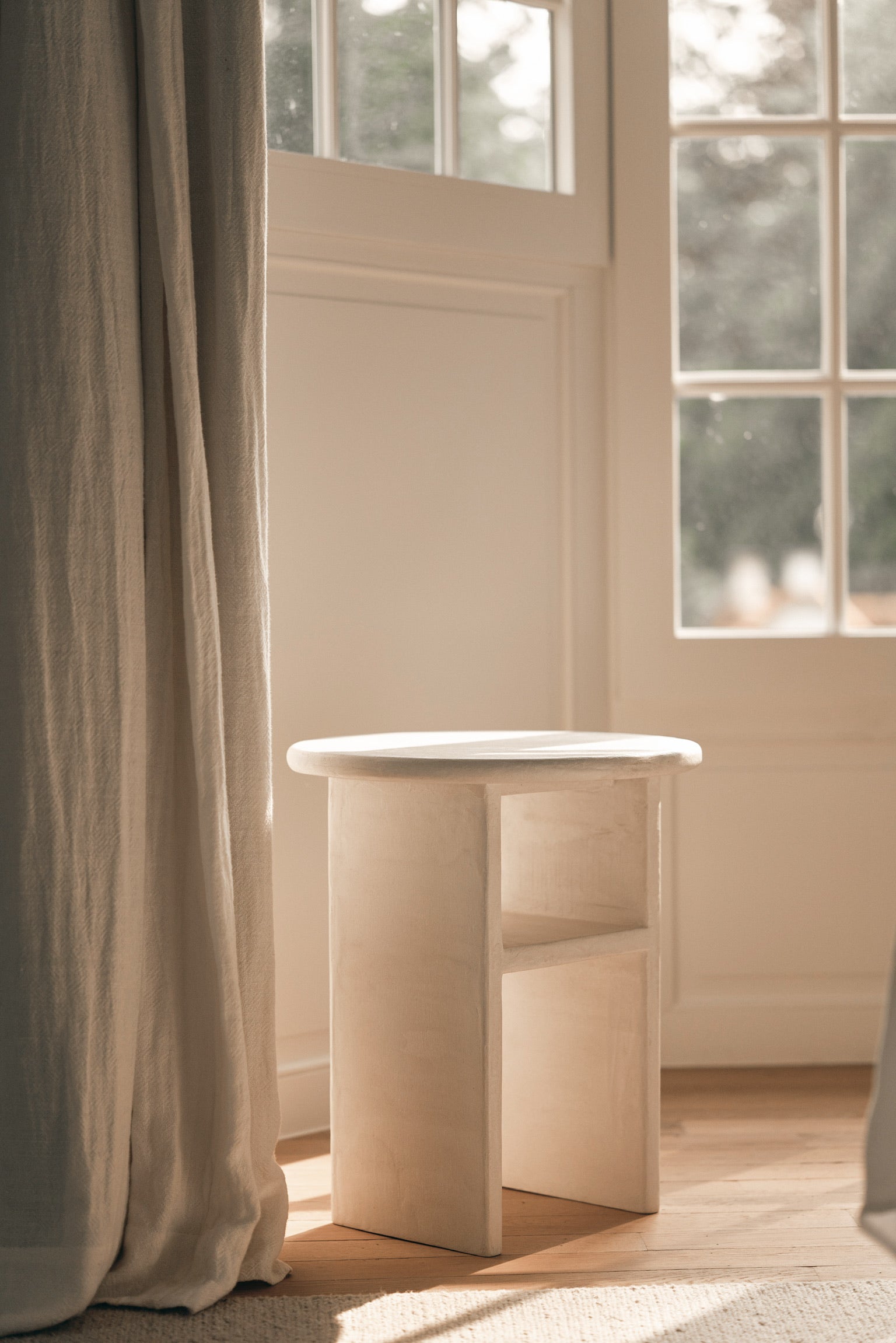 Stéphanie is a soft and elegant nightstand in a warm off-white finish. Its gentle curves and compact shape give it a calm, welcoming feel. Subtle, but full of character.